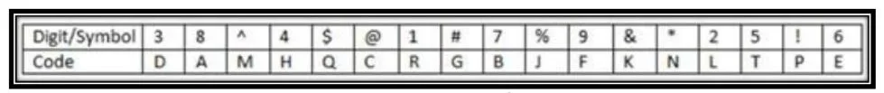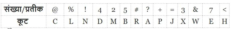 इस प्रश्न में, संख्याओं/प्रतीकों के एक समूह को नीचे दी गई तालिका और उसके बाद दी गई शर्तों के अनुसार अक्षरों का उपयोग करके कोडित किया गया है। शर्तों के बाद कोडों का सही संयोजन आपका उत्तर है। शर्तें: